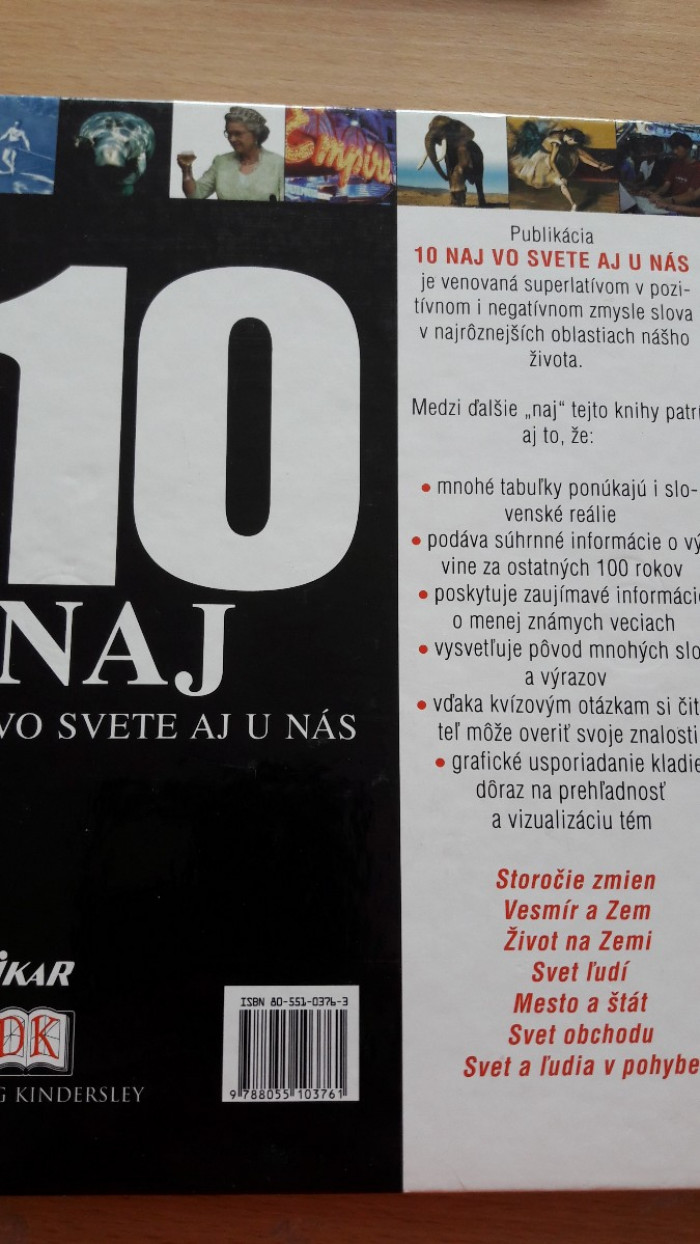 Publikácia je venovaná superlatívom v pozitívnom aj negatívnom zmysle slova v najrôznejších oblastiach nášho života. Obsahuje mnohé tabuľky, zaujímavé informácia o menej známych veciach, vysvetľuje pôvod mnohých slov a výrazov a veľa iného. Ikar 2002. Výborný stav, ako nová. Cena 5,--+poštovné. Pozrite si aj ostatné moje inzeráty