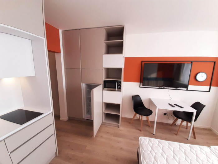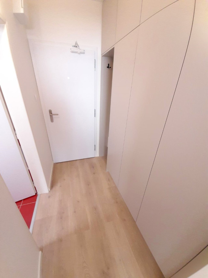 Prenajíma sa zariadený: vo vstupnej chodbe sú umiestnené vstav. skrine, v izbe spojenej s kuch. časťou je SMART TV, vstav. nábytok na mieru, jedálenský stolík so stoličkami, kuch. linka so indukčnou varnou doskou, mikrovlnka, zabudovaná chladnička, zabudovaná práčka, dvojposteľ, vstav. skrinky.........