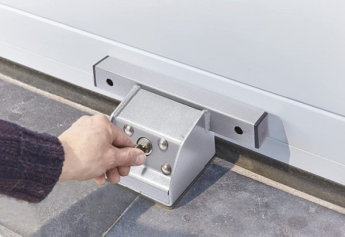 Predám výhodne úplne nový bezpečnostný oceľový zámok pre akúkoľvek garážovú bránu originál od francúzskej firmy MOTTEZ, rozmery: DxŠxV: 12x12x10cm, hmotnosť: 3,80 kg. Zámok zaisťuje zvýšenú bezpečnosť garážovej brány. Je ukotvený kolmo ku garážovej bráne ako aj k zemi pomocou 2 nárazníkov, ktoré zabraňujú jeho roztrhnutiu. Zvonku je zámok uzamknutý visiacim zámkom, ktorý je chránený oceľovým krytom. Vnútorné nárazníky zabraňujú roztrhnutiu a chránia tak dvere proti zatlačeniu nadol. Dve bočné dosky chránia zámok a robia ho odolným voči rozbitiu. Z dôvodu zvýšenej ochrany a odolnosti proti roztrhnutiu je garážová brána chránená proti krádeži. Zámok je kompatibilný s rôznymi garážovými bránami s pohonom (výklopné horné, sekcionálne a valčekové), ako aj bez pohonu. Lokalita: Košice, Mobil: 0905855520