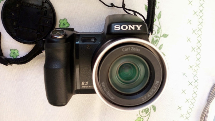 Predám digitálny fotoaparát Sony DSC-H7 Super Steady Shot, 8,1 Mpx, objektív Karl Zeiss, Vario Tessar, kompletné príslušenstvo, pamäťová karta, nabíjačka a popruh,. cena 80€ + dohoda. ... 8MPix. Nástupca osvedčeného ultrazoomom od SONY s optickou stabilizáciou obrazu, 15× optickým zoomom, 2.5"výklopným displejom, výstupom vo vysokom rozlíšení Full HD 1080, a dlhou výdržou. Strieborné prevedenie... Všetko funguje ako má, len ja ho už nepoužívam a je mi škoda ho nechať ležať len tak. Je ku nemu nabíjačka aj prenosná taška. Preferujem osobny odber. N.Zámky. Len volať. Viac info na: https://digital-camera.webnode.sk mám napredaj zachovalý digitálny fotoaparát, bez známky používania. Fotoaparát funguje bez akýchkoľvek problémov. Je k tomu aj nabíjačka na baterku a ovládač. Dôvod predaja - je nevyužitý. Technické parametre: objektív Carl Zeiss® Vario-Tessar® s rozsahom 15× (31–465mm po prepočte na kinofilm) usporiadanie objektívu: 13 šošoviek v 8 skupinách – 4 asférické členy a 1 ED člen 2.5" naklápací LCD displej so širokým pozorovacím uhlom elektronický hľadáčik s uhlopriečkou 0,2" s rozlíšením 201 000 pix. funkcia „Face Detection“ pre rozpoznanie tváre režim STABILIZÁCIE obrazu Super SteadyShot® v dvoch režimoch dvojitá stabilizácia spája stabilizátor obrazu Super SteadyShot a vysokú citlivosť ISO 3200 precízny 9 bodový autofocus i s možnosťou manuálneho ostrenia procesor BIONZ pre vylepšenú kvalitu obrazu a rýchlu prevádzku sekvenčné snímanie: 2.2 sn./s. (maximálne 100 snímkov v sérii) technológia DRO pre automatickú opravu kontrastu a expozície elektronická redukcia šumu Clear RAW™ NR expozičné režimy: P / A / S / M + 9 scénických režimov (Súmrak / Portrét za súmraku / Portrét / Krajina / Pláž / Sneh / Ohňostroj / Vysoká citlivosť / Šport) retušovanie vo fotoaparáte, vrátane opravy červených očí prezentácia s hudbou(v MP3) vo vysokom rozlíšení pre prehrávanie na displeji LCD vo fotoaparáte alebo na televízore HD (16:9), dodává sa s diaľkovým ovládačom rozlíšenie fotografie pre HD – 1920 × 1080 pix. (16:9) pre video je potrebné použiť formát MPEG Movie VX (maximum VGA rozlíšenie) AF prisvetlenie, PictBridge kompatibilný, samospúšť 2 a 10s, maximálna použiteľná karta 8GB Memory Stick DUO PRO™ s dodávaným akumulátorom NP-BG1 uvádza výrobca výdrž až 300 snímkov. web: https://digital-camera.webnode.sk