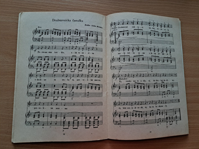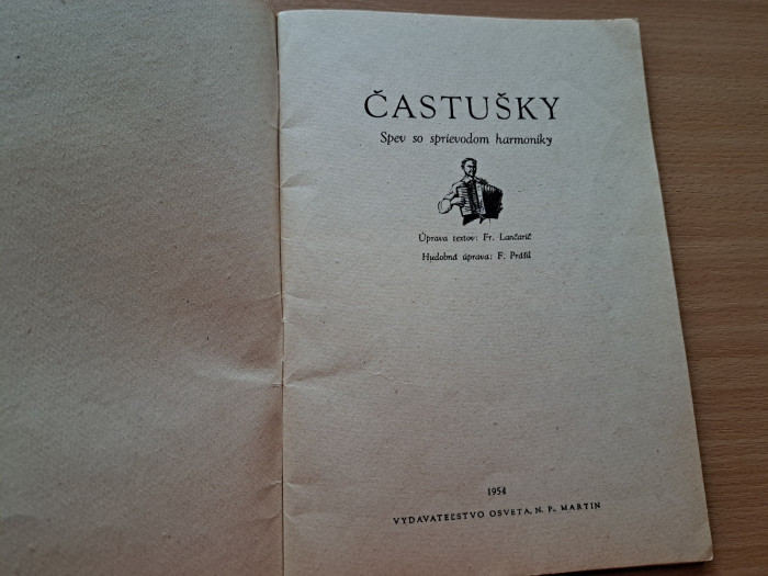 Spev so sprievodom harmoniky Úprava textov Fr. Lančarič, Hudobná úprava F. Prášil Brožúra z roku 1954. Obálka je ušmudlaná, inak len zažltnuté, čisté, nepoškodené, nepopísané. Cena 5,-- + poštovné. Pozrite si aj ostatné moje inzeráty.