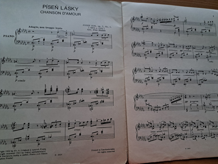 Vydal Supraphon Predám: 1. Antonín Dvořák: Largo, rok 1967, dobrý stav, bez škvŕn, bez poznámok 2. Zdeněk Fibich: Poem, Jaro a mládí, rok 1968, trochu ušpinené zvonku, bez poznámok 3. Zdeněk Fibich: Poem /violino e piano/, rok 1985, dobrý stav, čisté a nepoškodené 4. Fryderyk Chopin: Minutový valčík, rok 1972, obálka ušmudlana, vnútro čisté, bez poznámok 5. W.A. Mozart: Turecký pochod ze sonáty A dur, rok1972, rozpadnuté, špinavé, poznámky 6. Bedřich Smetana: Když Zdeněk můj, rok 1958, len zažltnuté 7. Bedřich Smetana: Louisina polka, rok 1974, dobrý stav, bez poznámok 8. Johann Strauss: Na krásném modrém Dunaji, rok 1987, čisté, bez škvŕn, bez poznámok 9. Josef Suk: Chanson d´amour, rok 1975, dobrý stav, bez škvŕn, bez poznámok 10. Carl Maria Weber: Vyzvání k tanci, rok 1984, dobrý stav, čisté, bez poznámok Cena 2,-- za kus. Spolu 16,-- + poštovné. Pozrite si aj ostatné moje inzeráty