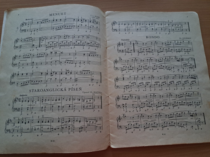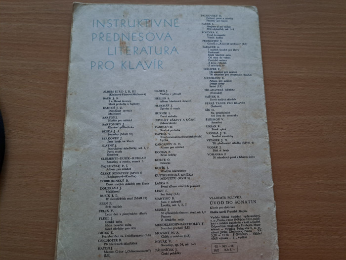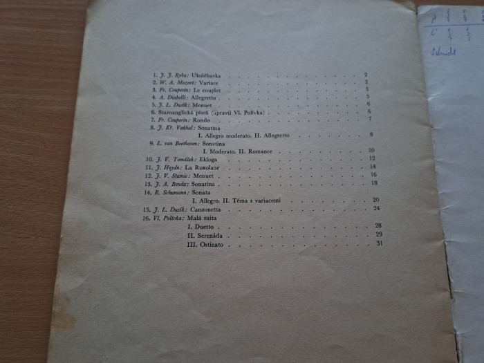16 vybraných postupně seřazených skladeb pro klavír na 2 ruce. Vybral a revidoval Vladimír Polívka. Brožúra rok 1966. Obálka je ušpinená a poškodená, strany zažltnuté, poznámky ceruzou. Cena 3,-- + poštovné. Pozrite si aj ostatné moje inzeráty.