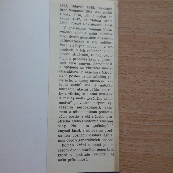 Román je obrazom dvoch starších generácii, ktoré v podstate vytvorili aj našu prítomnosť. Tatran 1967. Špinavý prebal, strany zažltnuté ale čisté, väzba v poriadku. Cena 1,--+poštovné. Pozrite si aj ostatné moje inzeráty.