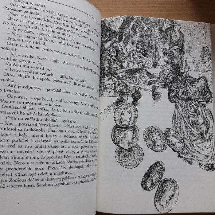 Tento historický román je vlastne štúdiou vnútorného myšlienkového sveta samovládcu a despotu, ktorý netúži veľkým politikom, ale veľkým básnikom, pričom je aj v jednom, aj v druhom len úbohým diletantom. Vydal Slovenský spisovateľ v roku 1984, ilustroval Karol Ondreička. Dosky sú ušpinené, inak dobrý stav. Cena 1,--+poštovné. Pozrite si aj ostatné moje inzeráty