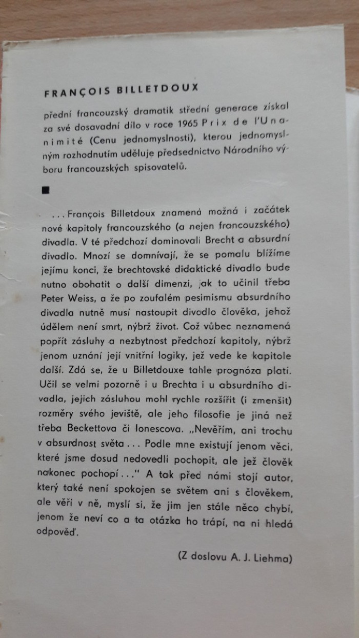 A co svět, šéfe? Točí se, šéfe! Ještě skleničku? Jdi přece k Törpové! Prepisy troch hier francúzskeho dramatika. Vydal Orbis1965, mäkká väzba, obálka sa čiastočne odtŕha od zvyšku. Cena 1,--+poštovné. Pozrite si aj ostatné moje inzeráty.