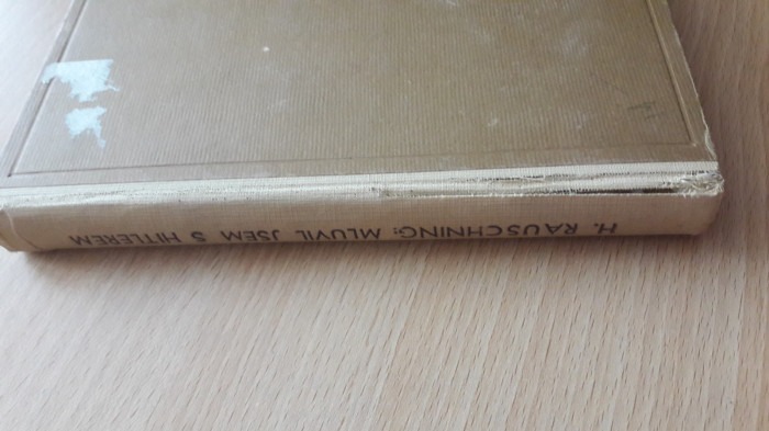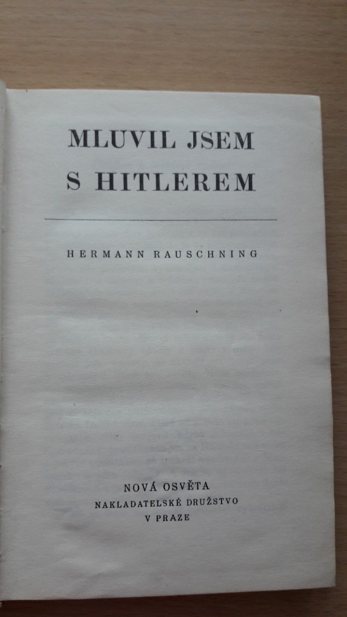 Autor, pruský dôstojník a hrdina z prvej svetovej vojny, spísal svoje súkromné a služobné rozhovory s Hitlerom v rokoch 1932 až 1934. V roku 1936 emigroval z Nemecka a verejne sa dištancoval od nacizmu a jeho hrôz. Nová osvěta 1946. Dosky sú poškodené a ušpinené, strany čisté, pečiatky knižnice. Cena 5,--+poštovné. Pozrite si aj ostatné moje inzeráty