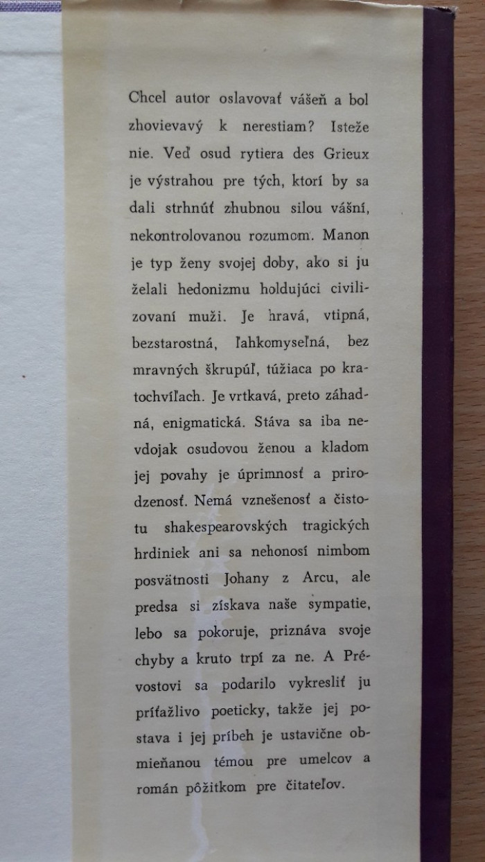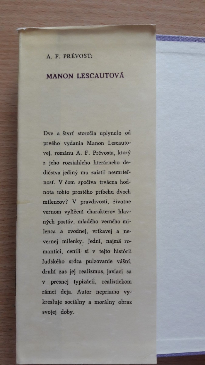 Príbeh lásky mladého verného až naivného rytiera des Grieux a zvodnej, vrtkavej a nevernej Manon. Slovenský spisovateľ 1964. Prebal trochu poškodený, inak dobrý stav. Cena 1,--+poštovné. Pozrite si aj ostatné moje inzeráty.