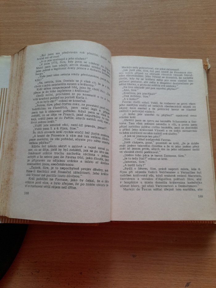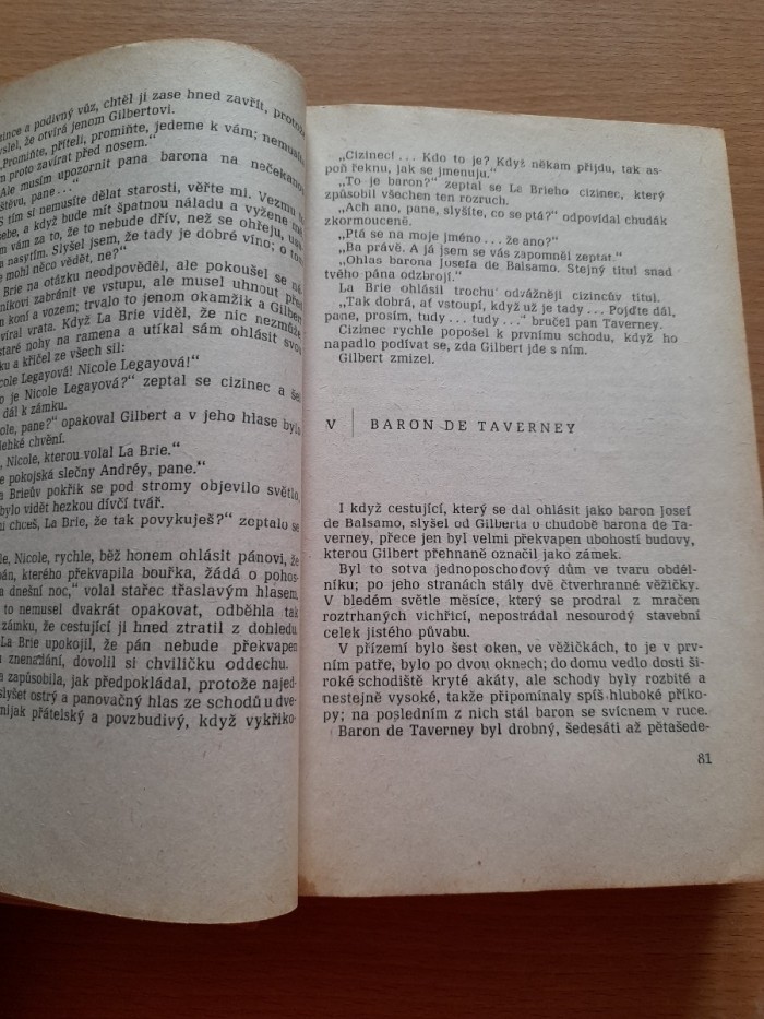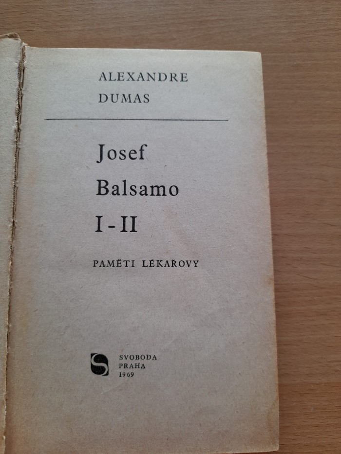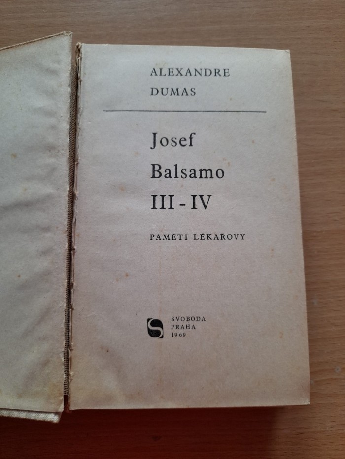 ---353-7--- 1. Josef Balsamo I-II, III-IV: Prvá časť cyklu Lekárove pamäte. Historický román z obdobia začiatkov francúzskej revolúcie. Svoboda 1969. Bez prebalov, zvonku silno ušpinené, na začiatku poškodená väzba. Cena spolu 1,--+poštovné. 2. Královnin náhrdelník I a II : Druhá časť cyklu Lekárove pamäte. Podvod s náhrdelníkom pre kráľovnú. Svoboda Praha 1970, papierové obaly sú trochu poškodené, inak dobrý stav. Cena spolu 1,-- + poštovné. 3. Hraběnka de Charny I a II: Posledná časť cyklu Lekárove pamäte. Román z obdobia francúzskej revolúcie. Svoboda Praha 1972. Prebaly sú trochu ušpinené a poškodené. Dosky silno ušpinené, inak dobrý stav. Cena spolu 1,-- + poštovné. Cena celého cyklu 3,-- + poštovné. Pozrite si aj ostatné moje inzeráty.