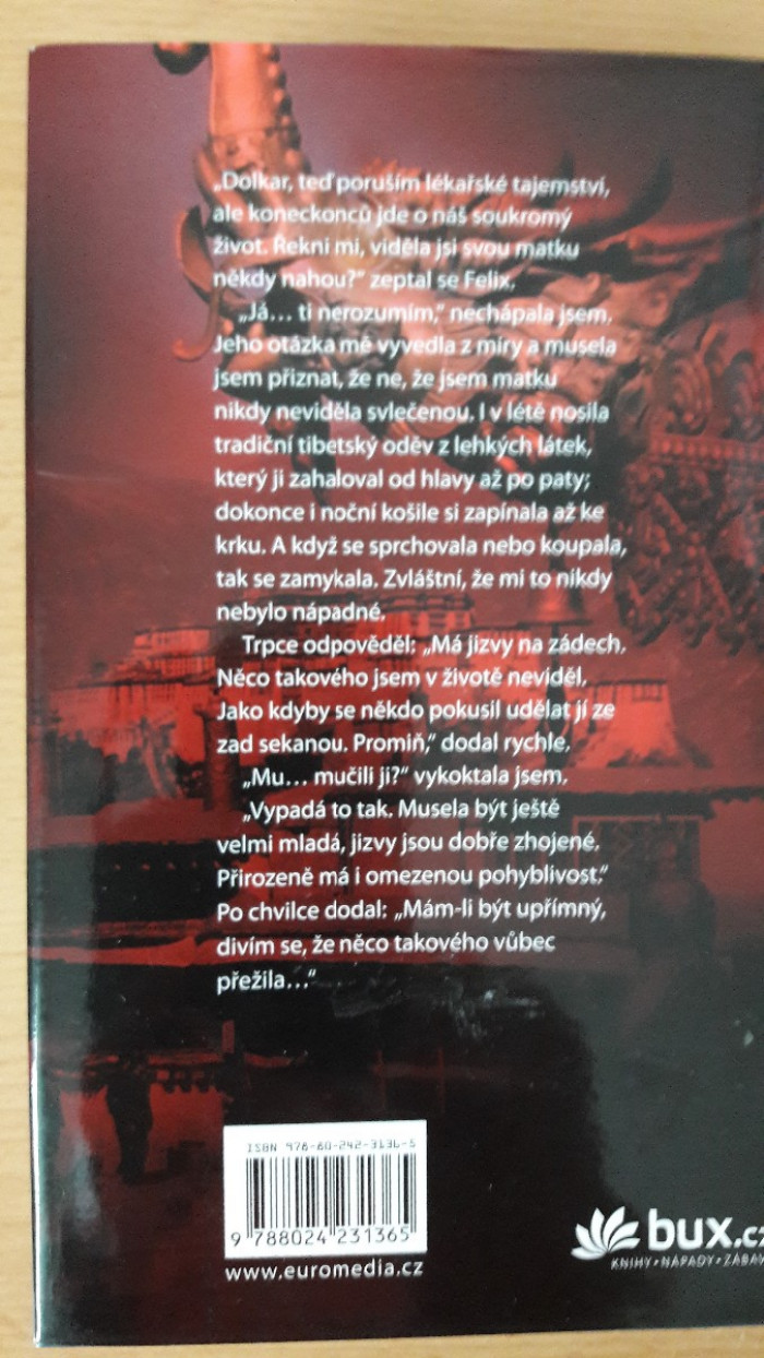 Príbeh architektky Dolkar, ktorá sa narodila a žije vo Švajčiarsku, pochádza však z Tibetu. Matka sa s ňou o tejto krajine ani o svojom odchode do exilu nebaví a tak sa Dolkar vydáva do Lhasy odhaliť pravdivú históriu svojej rodiny. Čítaná, nepoškodená, ako nová. Euromedia Group, Knižný klub, 2011. Cena 5,--+poštovné.