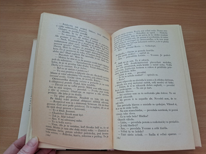 ---2708--- Ľúbostný príbeh chirurga a speváčky, v ktorom ožívajú parížske uličky, námestia, kaviarne, hotely a penzióny s ich záhadnými hosťami, emigrantmi, ktorí sa pokúšajú dostať z ohrozeného Paríža. Vydala Smena 1974, edícia Máj. Trochu zažltnutý prebal, inak dobrý stav. Cena 1,-- + poštovné. Pozrite si aj ostatné moje inzeráty.