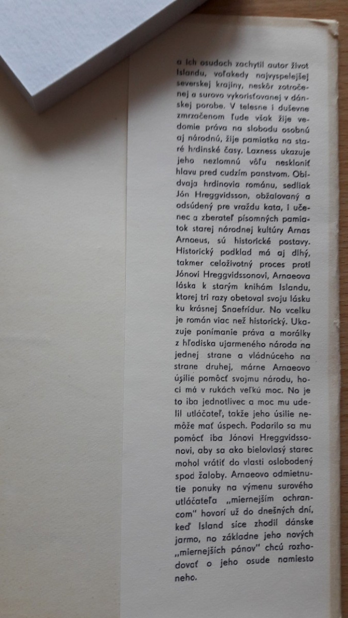 Román zachytáva život Islandu, vôľu ľudí neskloniť hlavu pred cudzím panstvom. Hrdinovia románu sú historické postavy. Vydala Spoločnosť priateľov krásnych kníh v roku 1958. mierne ušpinený obal a zažltnutie inak dobrý stav. Cena 1,--+poštovné. Pozrite si aj ostatné moje inzeráty.