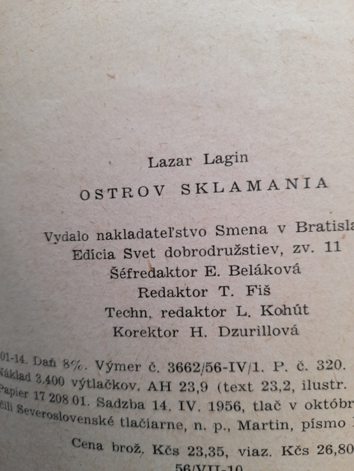 Román sa odohráva počas druhej svetovej vojny. Na tichomorskom ostrove, ktorý je obsadený nemeckou posádkou, sa zachráni skupinka stroskotancov: anglický strojník, americký reportér, a traja dôstojníci: ruský, anglický a americký. Autor sa zaoberá ich správaním navzájom i voči domorodcom. Smena 1956, Svet dobrodružstiev. Dosky sú trochu poškodené a ušpinené, na stranách škvrny, inak dobrý stav. Cena 3,--+poštovné. Pozrite si aj ostatné moje inzeráty