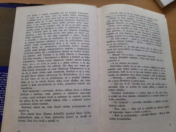 Román zachytávajúci spoločenský život Rusku v 19. storočí. Hlavná hrdinka sa zamiluje do mladého grófa Vronského. Opojená láskou nevníma spoločenské odsúdenie. Opúšťa manžela i milovaného syna a snaží sa situáciu riešiť rozvodom, ktorý manžel odmieta. Tatran 1975. Poškodený prebal a trochu ušmudlané dosky, inak dobrý stav. Cena 6,-- + poštovné za obe. Pozrite si aj ostatné moje inzeráty