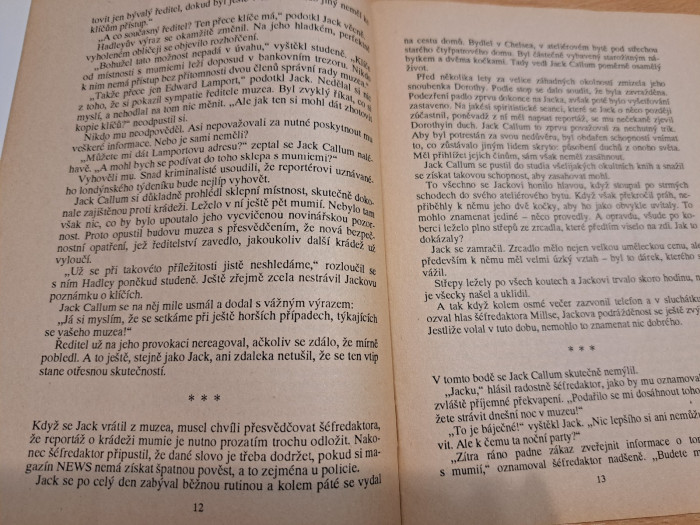 ---1872--- Jack Callum bojuje s duchom faraóna, ktorý dal zabiť bývalého riaditeľa múzea Lamporta. Vydal Ivo Železný v roku 1993, paperback, nepoškodené. Cena 1,-- + poštovné. Pozrite si aj ostatné moje inzeráty.
