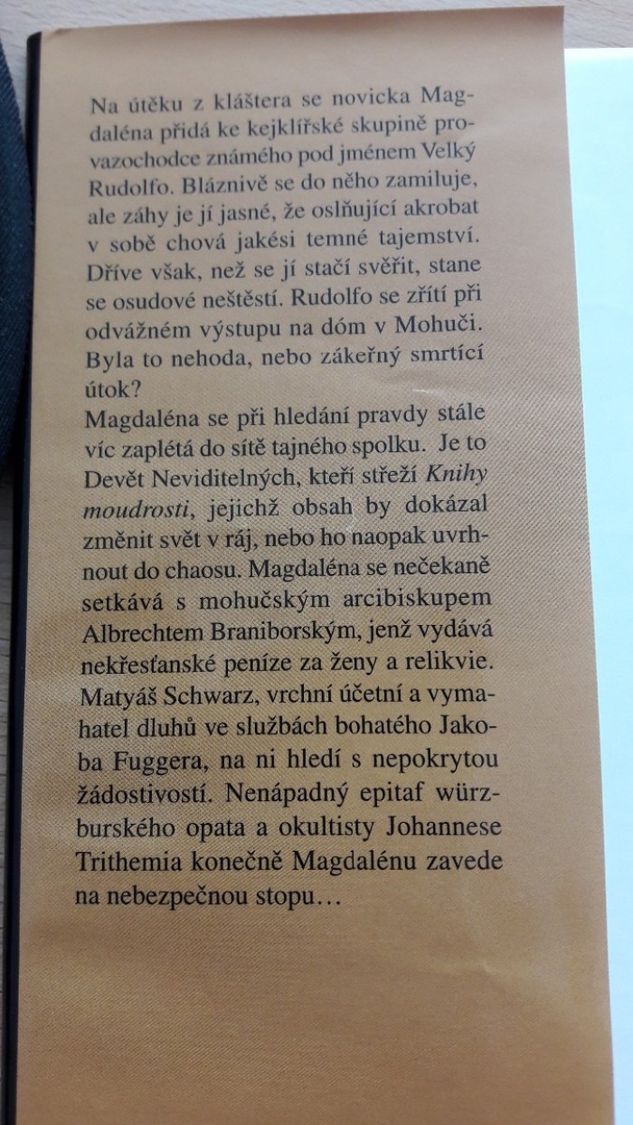 Napínavý príbeh novicky Magdalény, ktorá sa po úteku z kláštora pripojí ku skupine potulných cirkusantov na čele s Veľkým Rudolfom. Vydala Euromedia Group – Knižní klub, 2013. Výborný stav. Cena 3,--+poštovné. Pozrite si aj ostatné moje inzeráty.