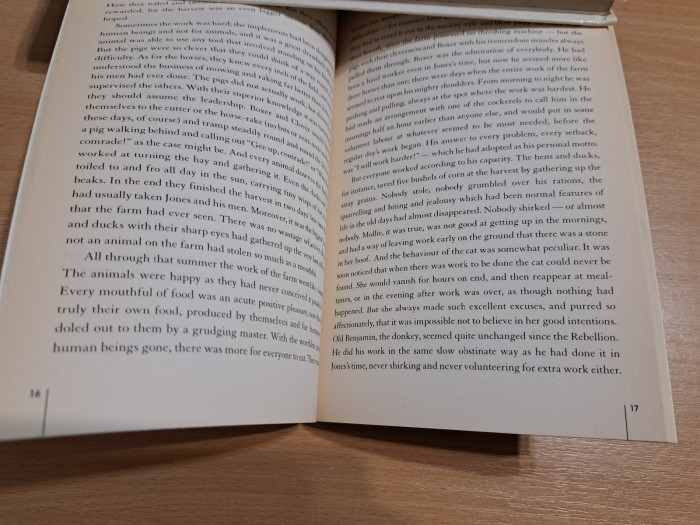 ---2065--- Politická satira na revolúciu. Zvieratá sa zbavia nadvlády ľudí a zavedú si svoj vlastný režim. V angličtine. Brožovaná väzba, rok 1998, čisté nepoškodené. Cena 5,-- + poštovné. Pozrite si aj ostatné moje inzeráty.