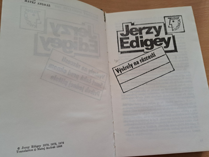 ---2256--- Tri detektívne príbehy poľského autora. Kniha obsahuje: Výstrely na rázcestí, Smrť čaká pred oknom a Príbeh jednej pištole. Slovenský spisovateľ 1988, Zelená knižnica. Strany čisté, väzba v poriadku, dobrý stav. Cena 1,--+poštovné. Pozrite si aj ostatné moje inzeráty