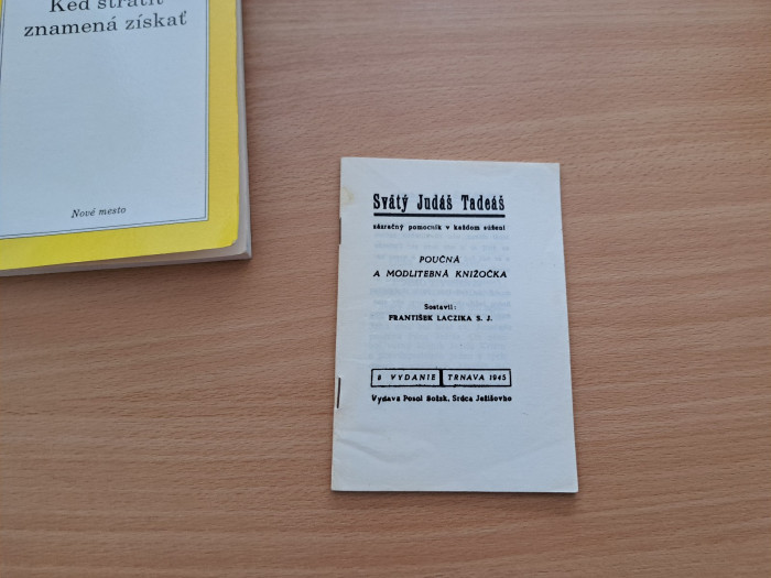 --2942-- Malá zbierka myšlienok, rozjímaní, dojmov o momentoch kresťanského života a o výrazoch evanjelia. Vydavateľstvo Nové mesto, rok 1992, mäkká väzba, malý formát, čisté, nepoškodené. Cena 5,-- + poštovné + Svätý Judáš Tadeáš a Modlitby k Panne Márii k tomu zdarma. Pozrite si aj ostatné moje inzeráty.