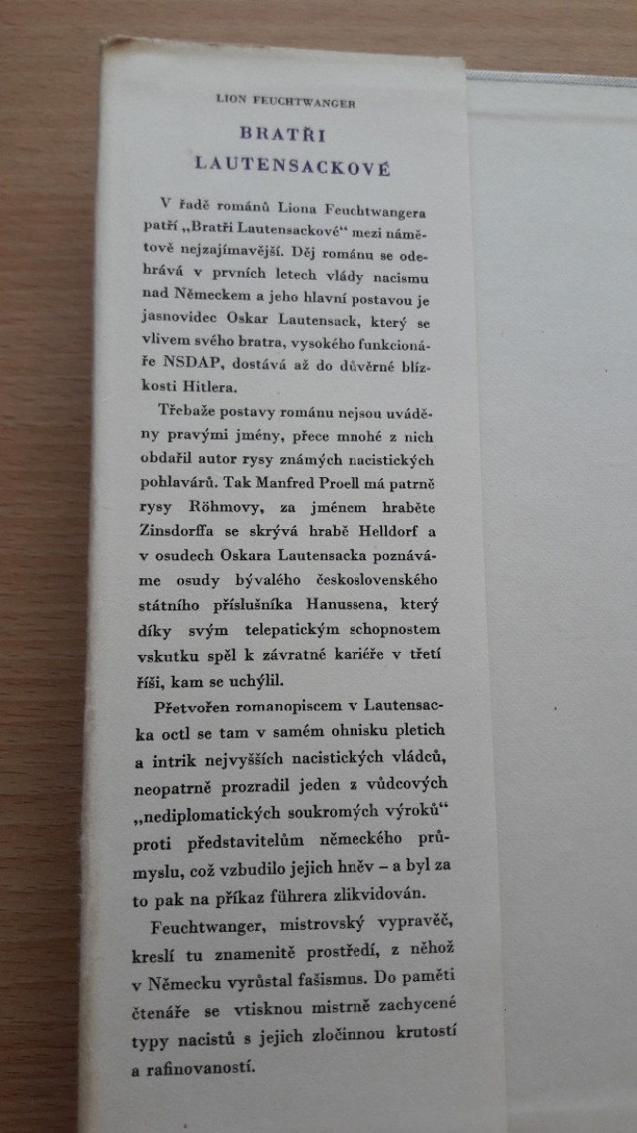 Román v prvých rokoch nacistickej vlády v Nemecku a jeho hlavnou postavou je jasnovidec Oskar Lautensack, ktorý sa pod vplyvom svojho brata, vysokého funkcionára NSDAP, dostáva do dôvernej blízkosti Hitlera. Naše vojsko Praha 1958, trochu ušpinený a poškodený prebal, inak dobrý stav. Cena 1,--+poštovné. Pozrite si aj ostatné moje inzeráty