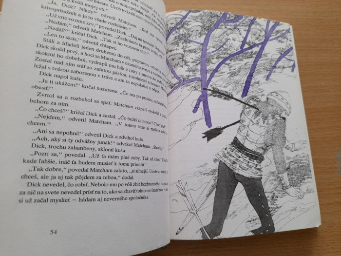 Historický dobrodružný román odohrávajúci sa počas vojny ruží. Príbeh mladého rytiera, ktorý sa snaží usvedčiť vraha svojho otca a zachrániť mladú a statočnú Janu. Do hry vstupuje neznámy pomstiteľ, ktorý za sebou zanecháva čierne šípy. Mladé letá 1983, ilustroval Ján Jaňák. Prebal aj dosky trochu ušpinené, inak dobrý stav. Cena 5,-- + poštovné. Pozrite si aj ostatné moje inzeráty