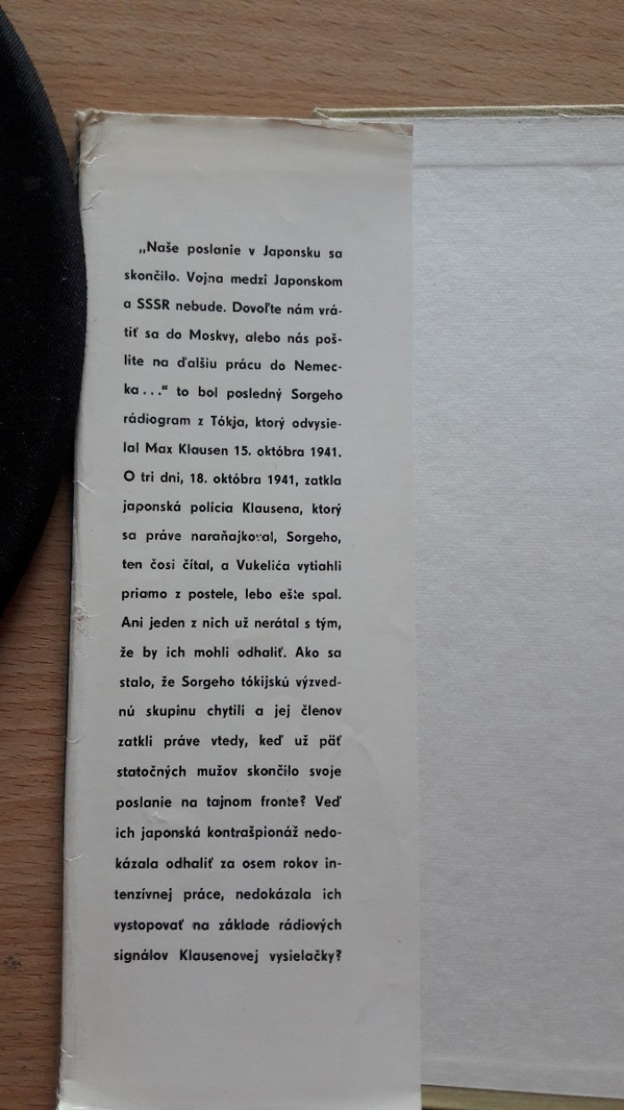 Polodokumentárna odborná politická kniha o živote vyzvedača Richarda Sorgeho a jeho výzvednej skupiny v Tokiu. Kniha obsahuje čiernobiele fotografie. Vydavateľstvo politickej literatúry 1966. Poškodený prebal, inak dobrý stav. Cena 3,--+poštovné. Pozrite si aj ostatné moje inzeráty