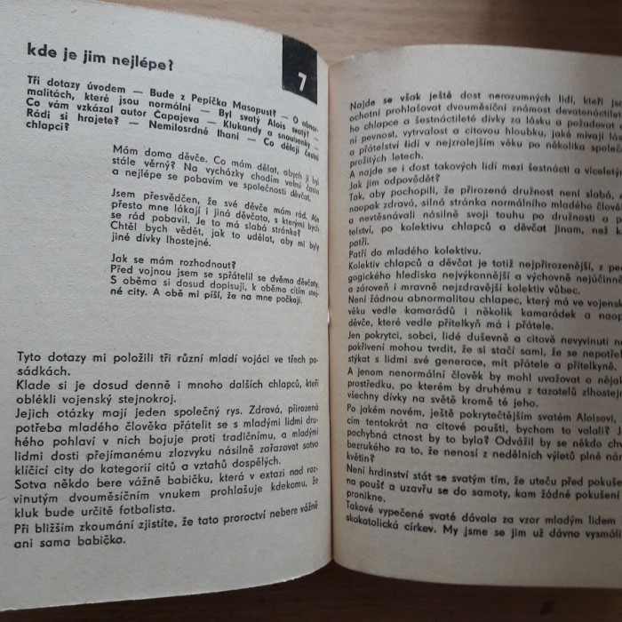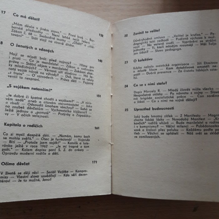 O láske, priateľstvách, stálosti a pevnosti citových vzťahov pod vplyvom kolektívu a rodičov i nástupu na základnú vojenskú službu. Brožúrka z roku 1963. Zvonku ušpinená, strany čisté. Cena 0,50 +poštovné. Pozrite aj ostatné moje inzeráty