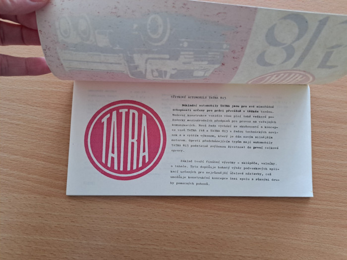 Predám: 1. Brožúrka o nákladnom vozidle Tatra 815. 2. 12 propagačných pohľadníc v obálke. Čisté a nepoškodené. Každé 7,-- + poštovné. Pozrite si aj ostatné moje inzeráty.