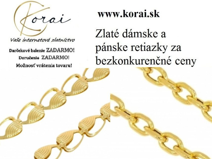 V ponuke internetového obchodu so šperkami Korai nájdete skutočne široký výber zlatých retiazok určených pre dámy ako aj pre pánov. Zlaté retiazky ponúkame vo viacerých dĺžkach a vo viacerých farebných prevedeniach. Na výber tak máte retiazky z bieleho zlata, retiazky zo žltého zlata, retiazky z kombinovaného žlto - bieleho zlata ako aj retiazky zo žlto - červeného zlata. Navštívte internetové zlatníctvo Korai a zaručene si vyberiete. E-shop Korai. Navštívte e-shop Korai a zaručene si vyberiete. E-shop Korai Vaše internetové zlatníctvo ponúka zlato. Internetové zlatníctvo Korai. Online šperky Korai, zlato. Online zlatníctvo Korai. Online šperky Korai, striebro i zlato. E-shop Korai šperky. Zlaté retiazky Korai. Zlaté retiazky. Retiazky zo žltého 14 karátového zlata.