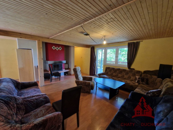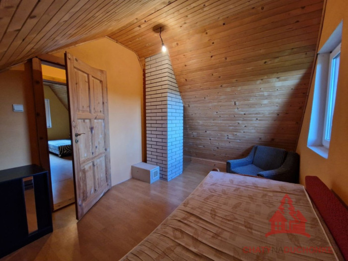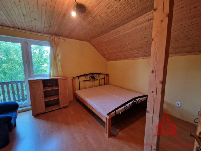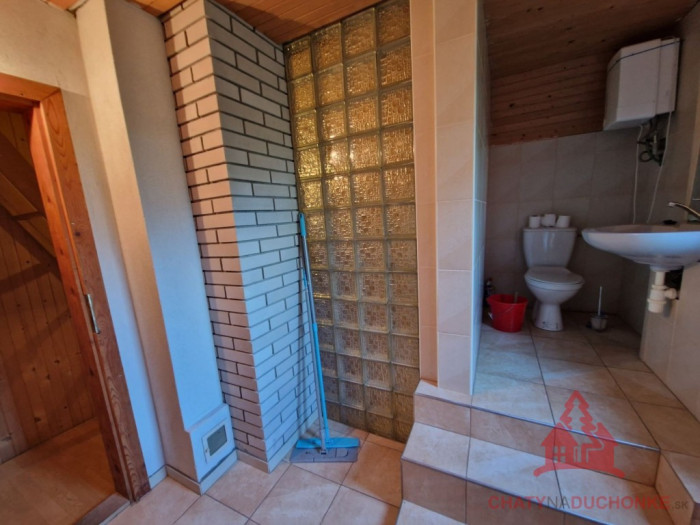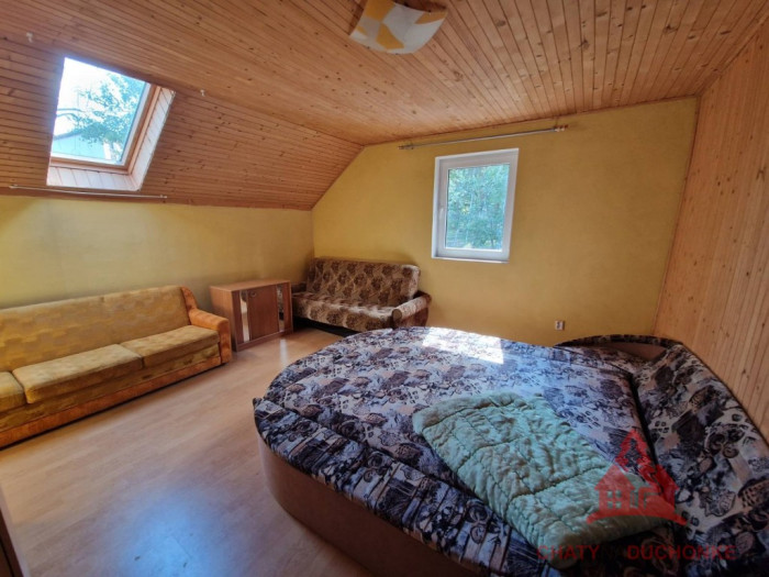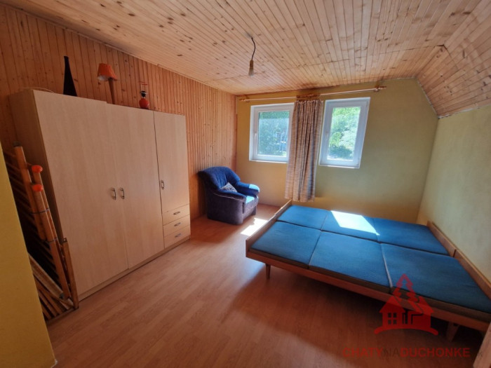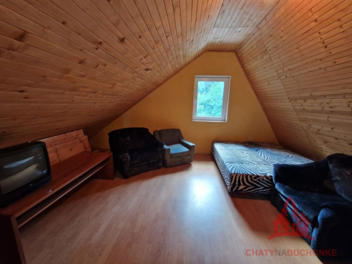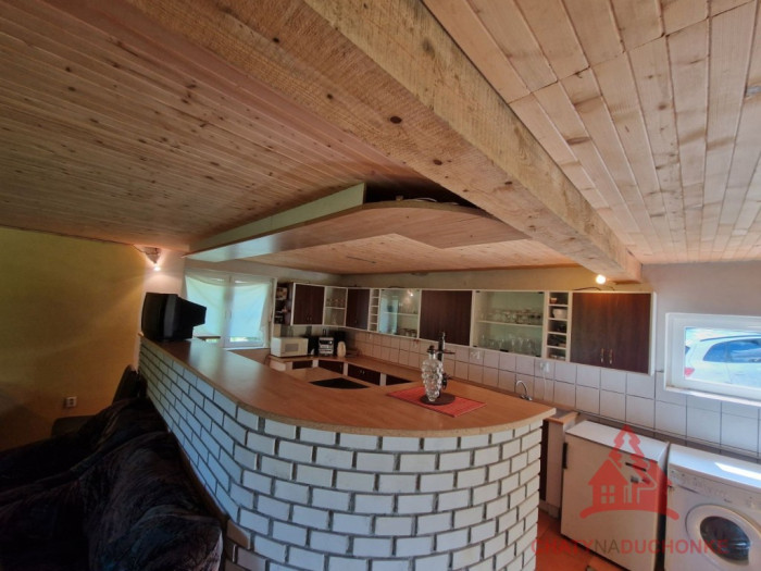 V rekreačnej oblasti DUCHONKA ponúkame na predaj peknú, slnečnú a zariadenú poschodovú chatu s terasou. Chata má 6 – izieb, je plne zariadená a pripravená na oddych. V prízemnej časti chaty sa cez priestrannú terasu a bezpečnostné dvere dostaneme do chaty, kde je veľká spoločenská miestnosť spojená spolu s kuchyňou. Kuchyňa je od obývačkovej časti oddelená sympatickým murovaným barovým pultom. Samozrejme kuchyňa je štandardne vybavená spotrebičmi (el. vstavaná varná doska s rúrou, chladnička, práčka a pod .) Obývacej časti domu dominuje krb na tuhé palivo, ktorý cez prieduchy vykuruje celú chatu. V tejto časti chaty je aj samostatné wc č.1, terasa a z chodby vstup do pivničných priestorov. Na 1. poschodí sú 3 izby a kúpeľňa s wc. Do ďalšieho poschodia ideme už malými schodíkmi a tam sú 2 izby. Izby sú zariadené. Chata bola postavená v roku 2013. Stavba je murovaná a obložená dreveným obkladom. Strecha je šindlová. Pivničné priestory sú nedokončené. V chate je zavedený vodovod, odpad je zvedený do žumpy. Ohrev vody zabezpečuje elektrický bojler. Vybavenie chaty ako ho vidíte na foto zostáva na chate. Zastavaná plocha chaty je cca 121 m2, úžitková plocha je cca 300 m2, priestraná terasa 30 m2 je príjemne tienená stromami a výmera pozemku je celkovo 336 m2. Vrelo doporučujem, krásne prostredie, super chata, tichá lokalita a predajom je chata ihneď k dispozícii. Je vhodná ako na súkromné účely, tak aj na prenájom. V cene je zahrnutý - kompletný právny servis - vypracovanie Kúpnych, nájomných a iných typov zmlúv - právne poradenstvo - popredajný servis / zmeny u dodávateľov elektriky, plynu a vody/ a samozrejme bezplatné poradenstvo pri vybavovaní hypoúveru. Sme členom NARKS. Obhliadku dohodne: Boris HANKO, tel. 0915 702 177