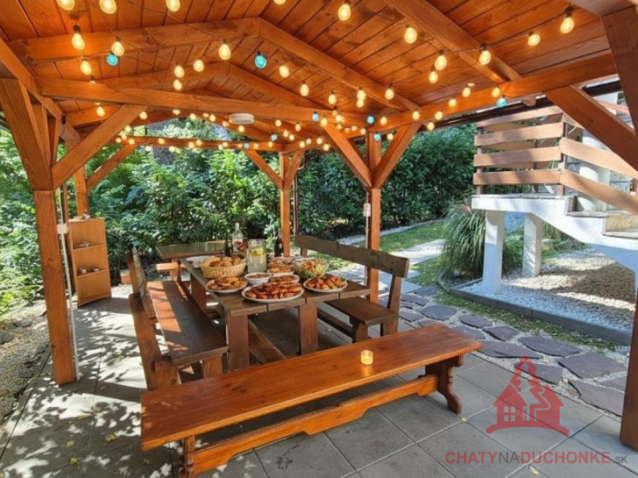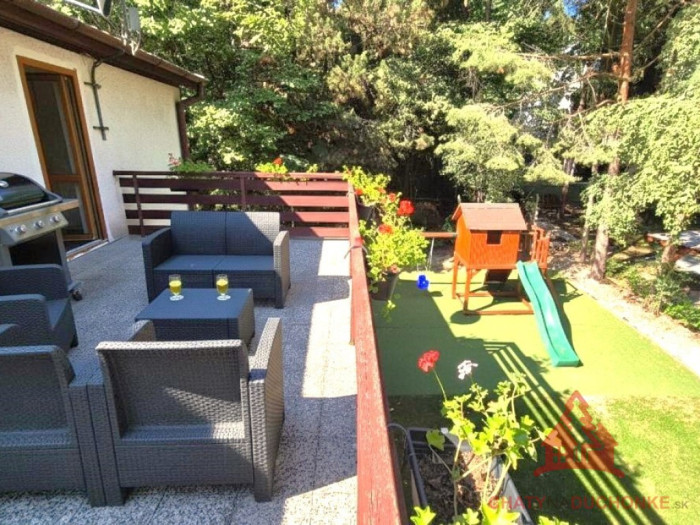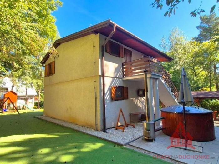 DUCHONKA – chata, kde sa spomaľuje čas. Nie je to len chata. Je to miesto oddychu, zážitkov a atmosféry, kam sa budete chcieť stále vracať. V obľúbenej rekreačnej oblasti Duchonka – lokalita Vinohrady ponúkame na predaj murovanú, celoročne obývateľnú chatu, situovanú v krásnom prírodnom prostredí a len pár minút chôdze od vody. Ráno káva na terase, cez deň pohoda v prírode a večer oheň v krbe či vírivka pod hviezdami. Prečo je táto chata výnimočná: celoročne obývateľná ústredné elektrické kúrenie + krb 2 samostatné bytové jednotky – ideálne pre 2 rodiny alebo investíciu terasa, altánok, kaďa s vírivkou tiché prostredie, príroda, voda na dosah okamžite využiteľná bez ďalších investícií Dispozícia: Prízemie: kuchyňa prepojená s obývačkou a krbom 2× spálňa kúpeľňa s WC technická miestnosť garáž Poschodie: kuchyňa s obývačkou 2× spálňa kúpeľňa s WC veľká terasa Exteriér: Altánok ideálny na oslavy, grilovanie a posedenia s priateľmi. Za ním kaďa s vírivkou (ohrev na drevo), ktorá ponúka dokonalý relax počas celého roka. Detské ihrisko poteší najmenších. Technické informácie: rekonštrukcia v roku 2021 nová elektroinštalácia zmodernizované kúpeľne a kuchyne elektrické ústredné kúrenie ohrev vody elektrickým bojlerom napojenie na elektrinu 230 V / 380 V verejný vodovod odpad riešený žumpou strecha: plechová krytina stavebný materiál: tehla a kváder Výmerové údaje: zastavaná plocha: 103 m² úžitková plocha: 200 m² obytná plocha: 150 m² výmera pozemku: 603 m² Zhrnutie: Krásne prostredie, výborná dispozícia, silná atmosféra. Ideálna na vlastný oddych aj ako investícia na prenájom. Obhliadku dohodne: Boris HANKO, tel. 0915 702 177