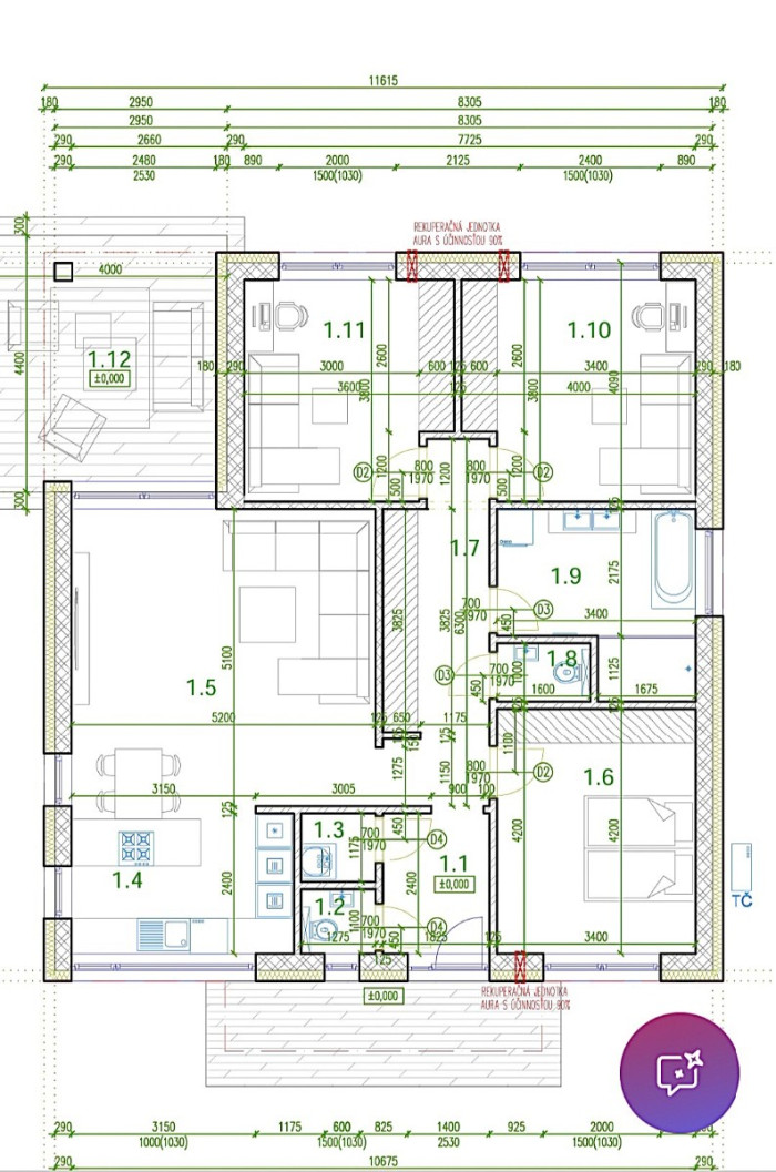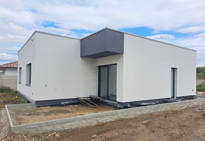 Dom je napojený na prípojky elektriny, vody a kanalizácie, steny sú murované z tvárnic HELUZ, zateplené tepelnou izoláciou, strop nad 1.NP bude tvorený stropným systémom PREMACO, strecha plochá so sklonom, vykurovanie objektu je riešené elektrickým podlahovým kúrením, predpríprava na klimatizáciu, krb, vonkajšie žalúzie....... Pozemok bude oplotený, pred domom budú vybudované 3 park. státia.