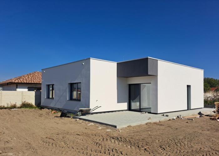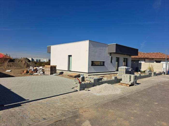 Dom je napojený na prípojky elektriny, vody a kanalizácie, steny sú murované z tvárnic HELUZ, zateplené tepelnou izoláciou, strop nad 1.NP bude tvorený stropným systémom PREMACO, strecha plochá so sklonom, vykurovanie objektu je riešené elektrickým podlahovým kúrením, predpríprava na klimatizáciu, krb, vonkajšie žalúzie....... Pozemok bude oplotený, pred domom budú vybudované 3 park. státia.