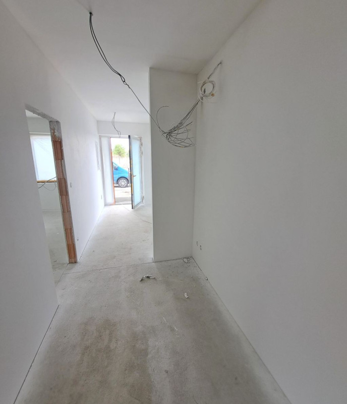 Dispozícia domu: vstupuje sa cez predsieň do chodby, z kadiaľ sú prístupné všetky obytné miestnosti rodinného domu. Z predsiene je prístup aj do WC a technickej miestnosti. Z chodby je prístupná denná časť, obývacia miestnosť s kuchyňou na jednej strane a na druhej strane je spálňa, druhé WC, kúpeľňa a na konci chodby dve izby. Z obývacej miestnosti je prístup na terasu.