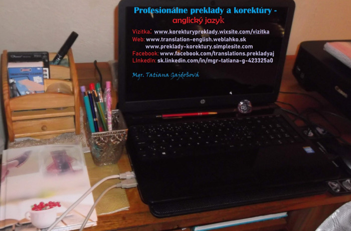 Preklady a opravy textov zo všetkých odborov a oblastí - bez obmedzení, pokiaľ ide o zameranie textu. VŠ vzdelanie v odbore angl. jazyk + úspešná prax v oblasti prekladov a korektúr textov od r. 2010 - napr. korektúry tvorby učiteľov angličtiny v rámci celej SR pre Minist. školstva a CVTI SR, od novembra 2016 - preklady dokumentov pre austrálske úrady a súdy, atď.. Okrem prekladov zo slovenčiny do angličtiny a naopak a korektúr textov v AJ ponúkam tiež preklady z češtiny do angličtiny! Môj level znalosti angličtiny je C2 podľa väčšiny testov, niekedy C1.