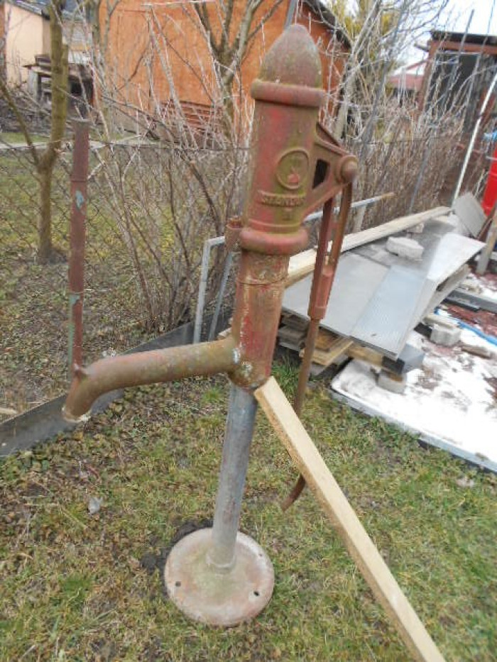 Ruční, pákové, stojanové retro čerpadlo na vodu od českého výrobce Sigma, model Standart II. Klasická liatinová pumpa na studnu. Rozmery: výška: 123 cm, šírka: 42 cm. Stále jsou na ní dostupné veškeré náhradní díly. Cena je dohodou, kupujúci môže navrhnúť cenu. Je vhodná i jako retro dekorace na záhradu, má patinu. N.Zámky. Pošlem kuriérom. Len volať, volať večer. Viac info na webe: https://lila-75.webnode.sk